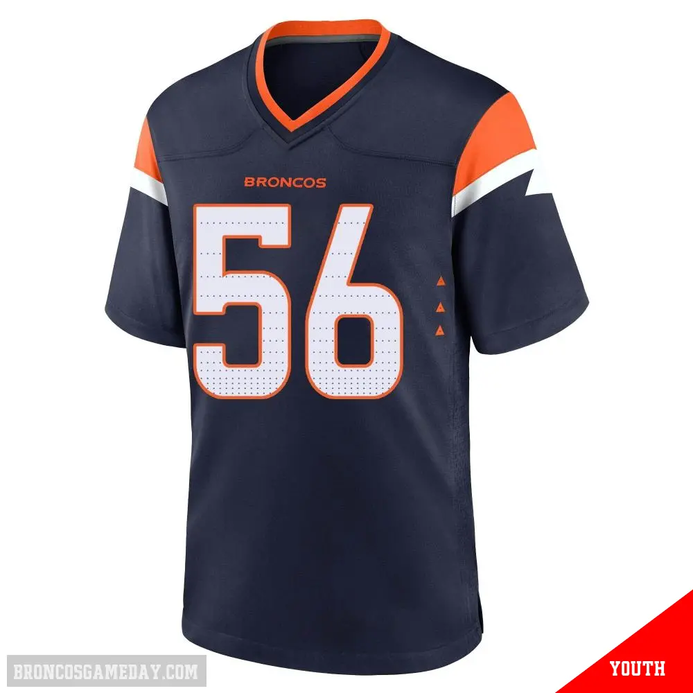Display your Broncos spirit year-round with this #56 Youth Levelle Bailey Navy Game Denver Broncos Alternate Jersey. Whether you're in the crowd or lounging at home, it's the ideal way to showcase your love for Broncos.